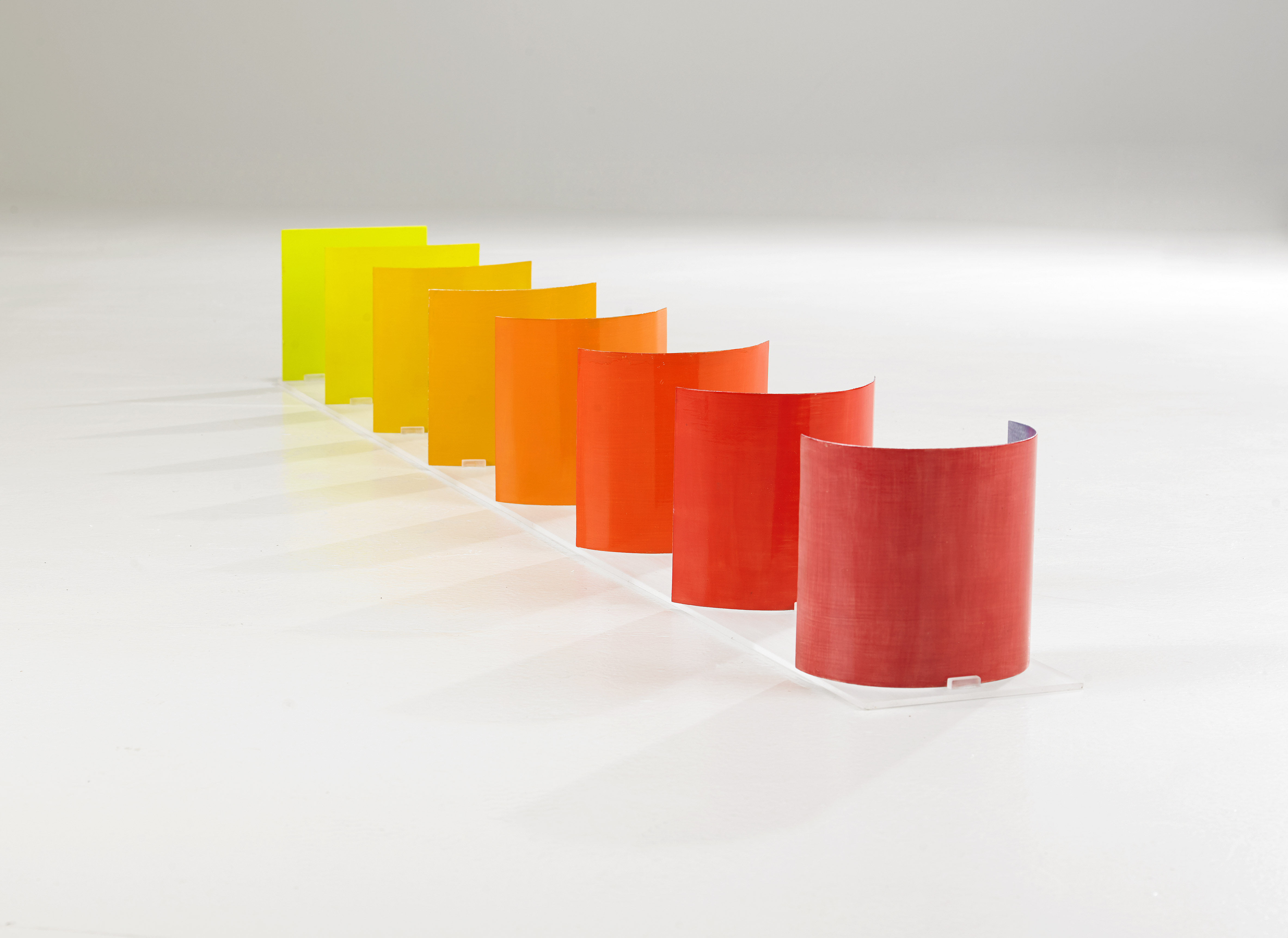 Colour follows form, Painted plexiglass, 74 x 228 x 30 cm