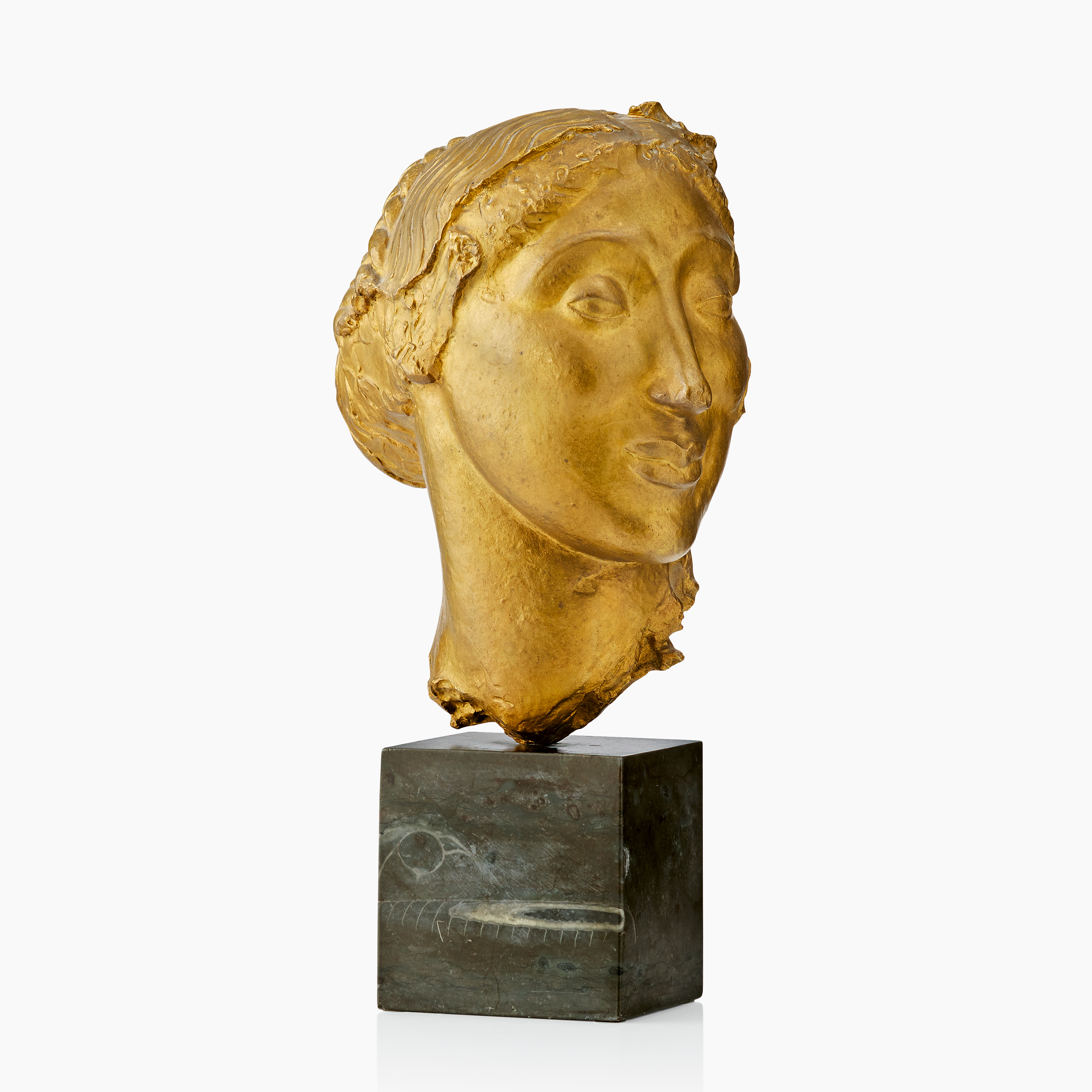 Fragment from The Dancers (head), Gold patinated bronze, 35 cm (with stone base 50 cm), 1913-14