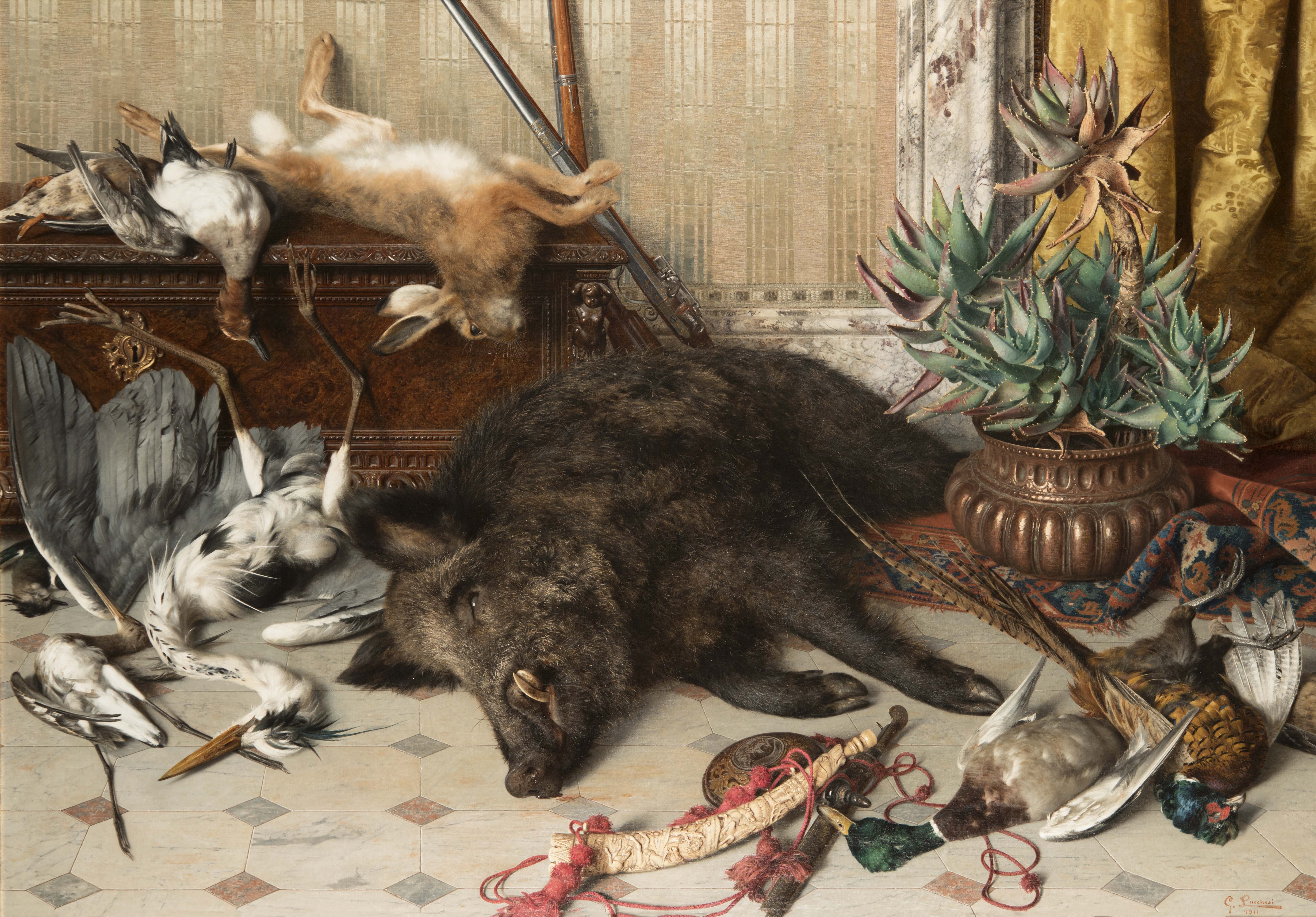 Still life with wild boar, hare and birds, oil on canvas, 120 x 170 cm, 1911