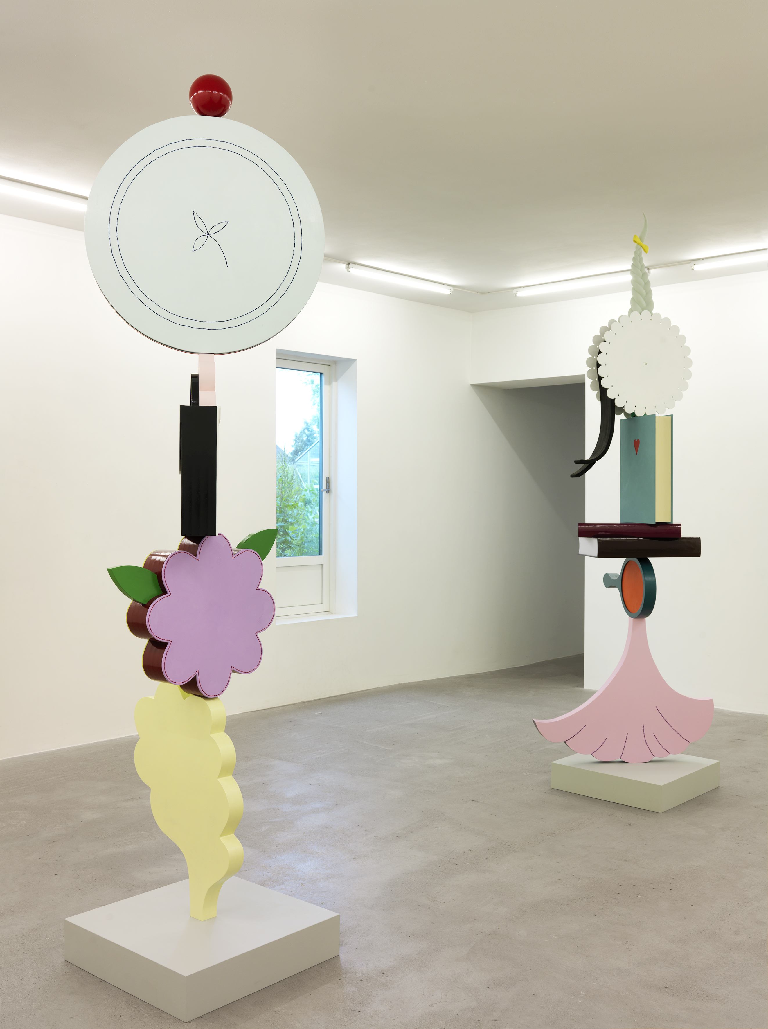 Before everything falls I, II, Painted wood, mixed media, height 280 cm, 2014