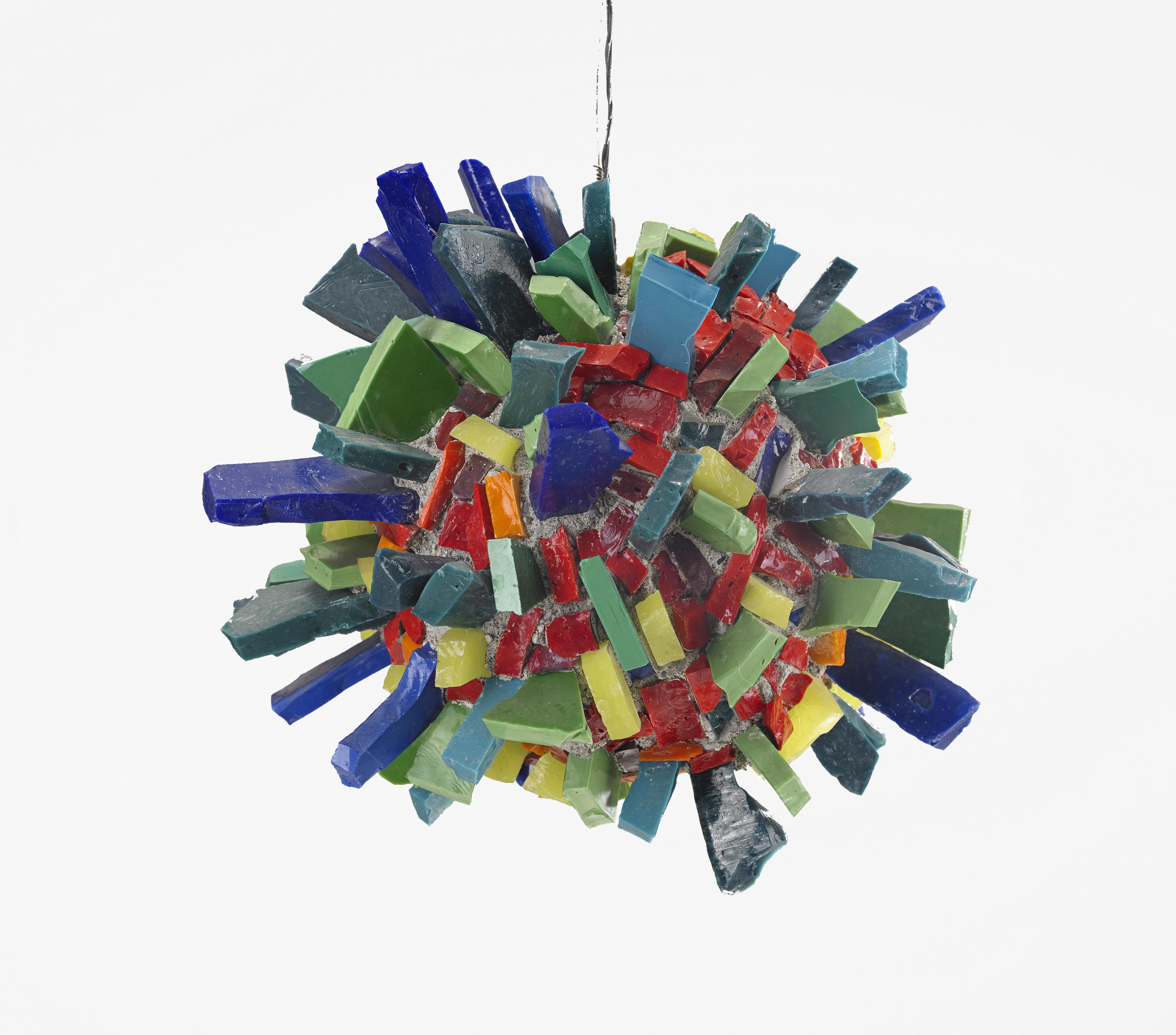 Sphere in colour - with scattered parts, glass, 28 x 32 cm