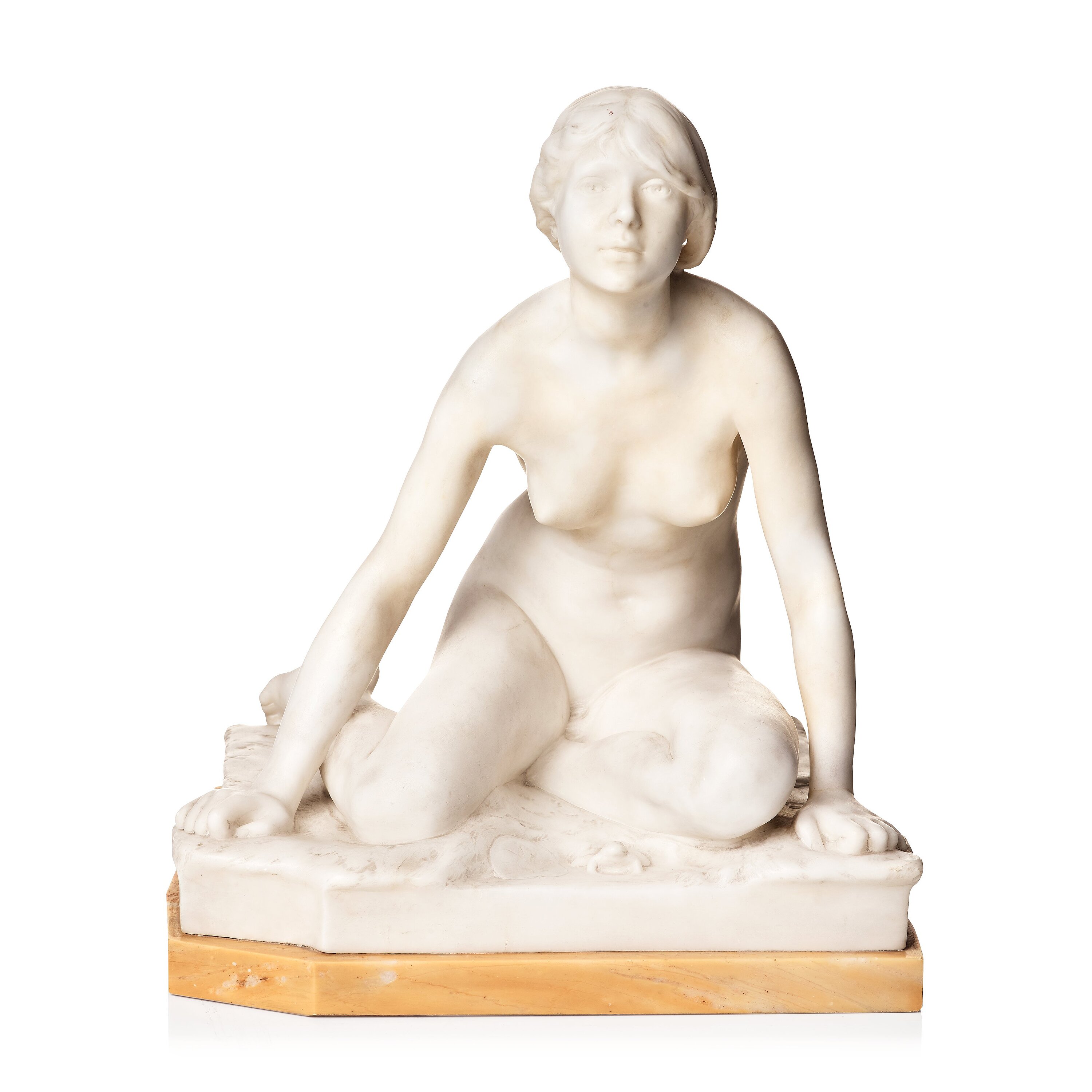 Frog, marble, height 39 cm (with stone base 42 cm).
