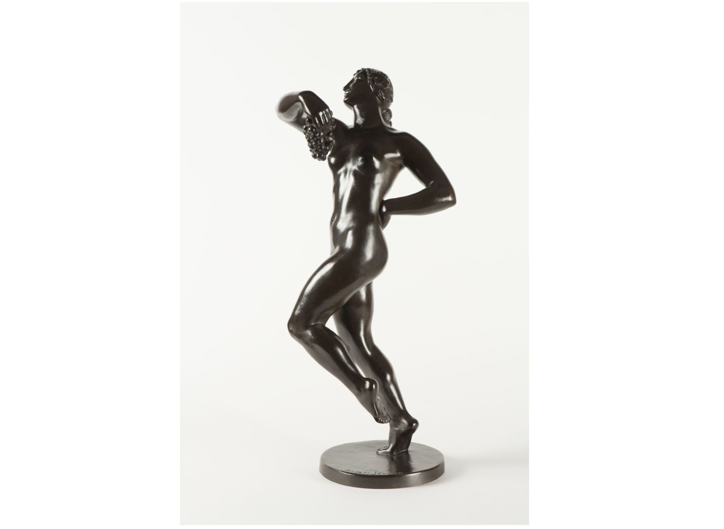 Nude woman holding a bunch of grapes, bronze, 45 cm