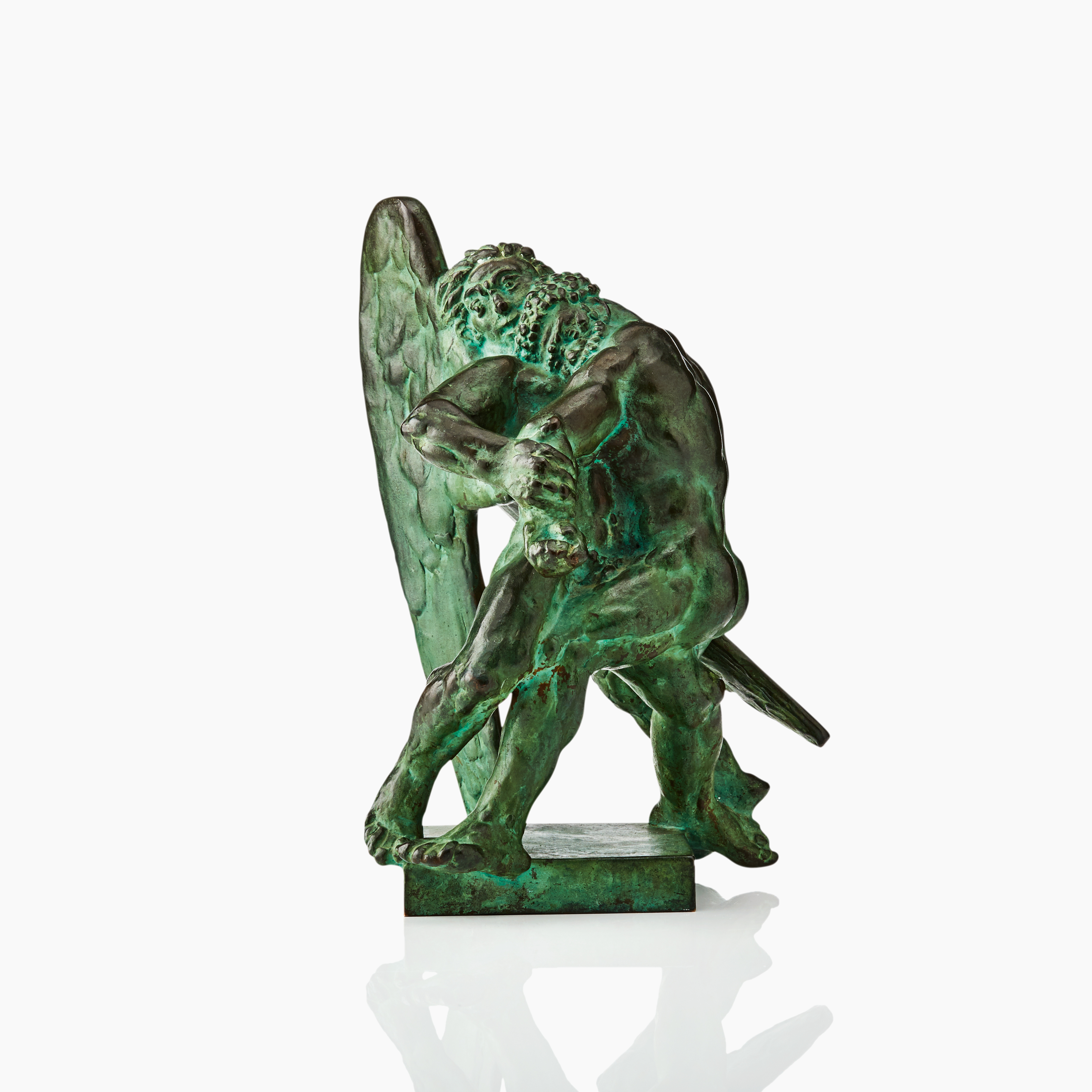 Jacob wrestling with the angel, Green patinated bronze, 29 cm