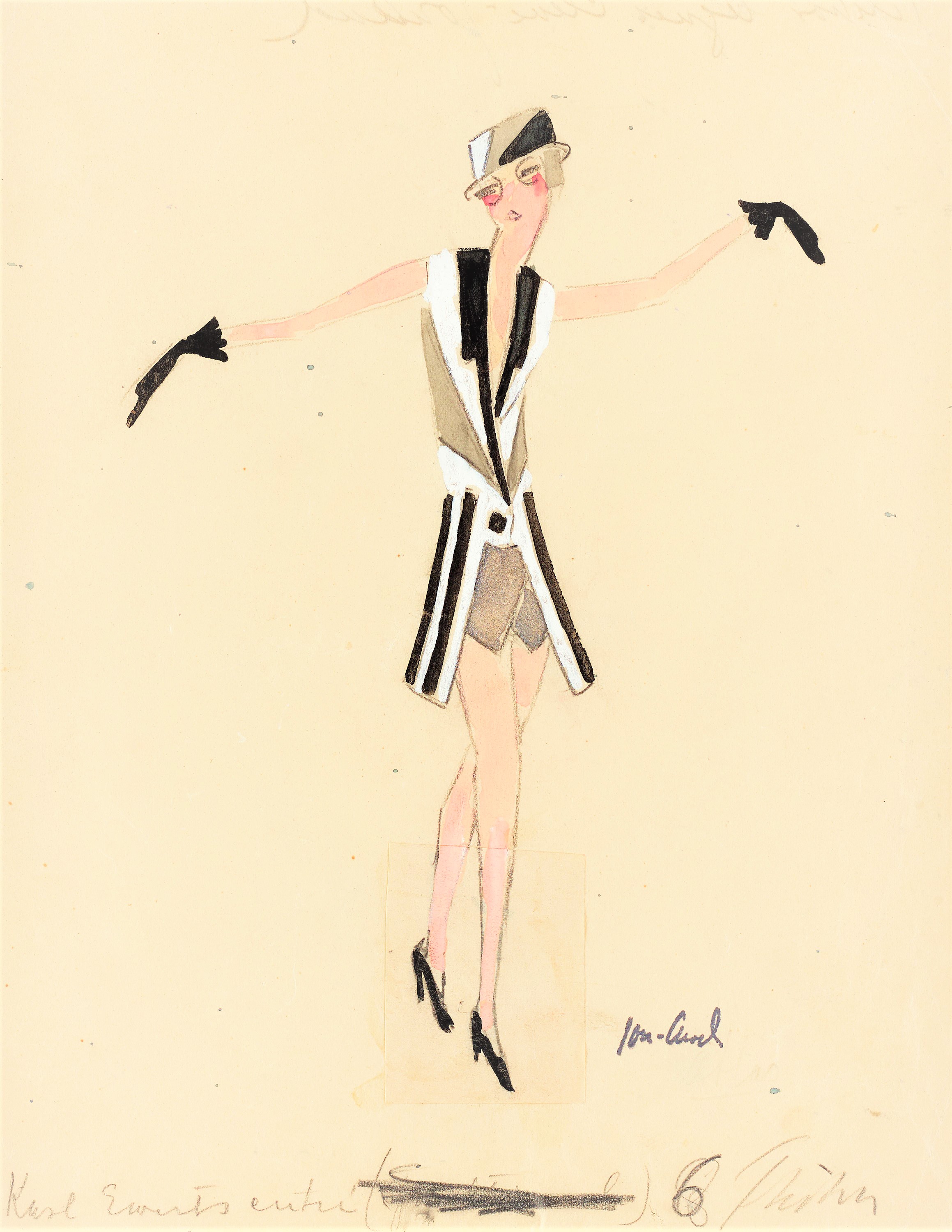 Stage clothes in black, white, grey and silver, mixed media, 27 x 21 cm