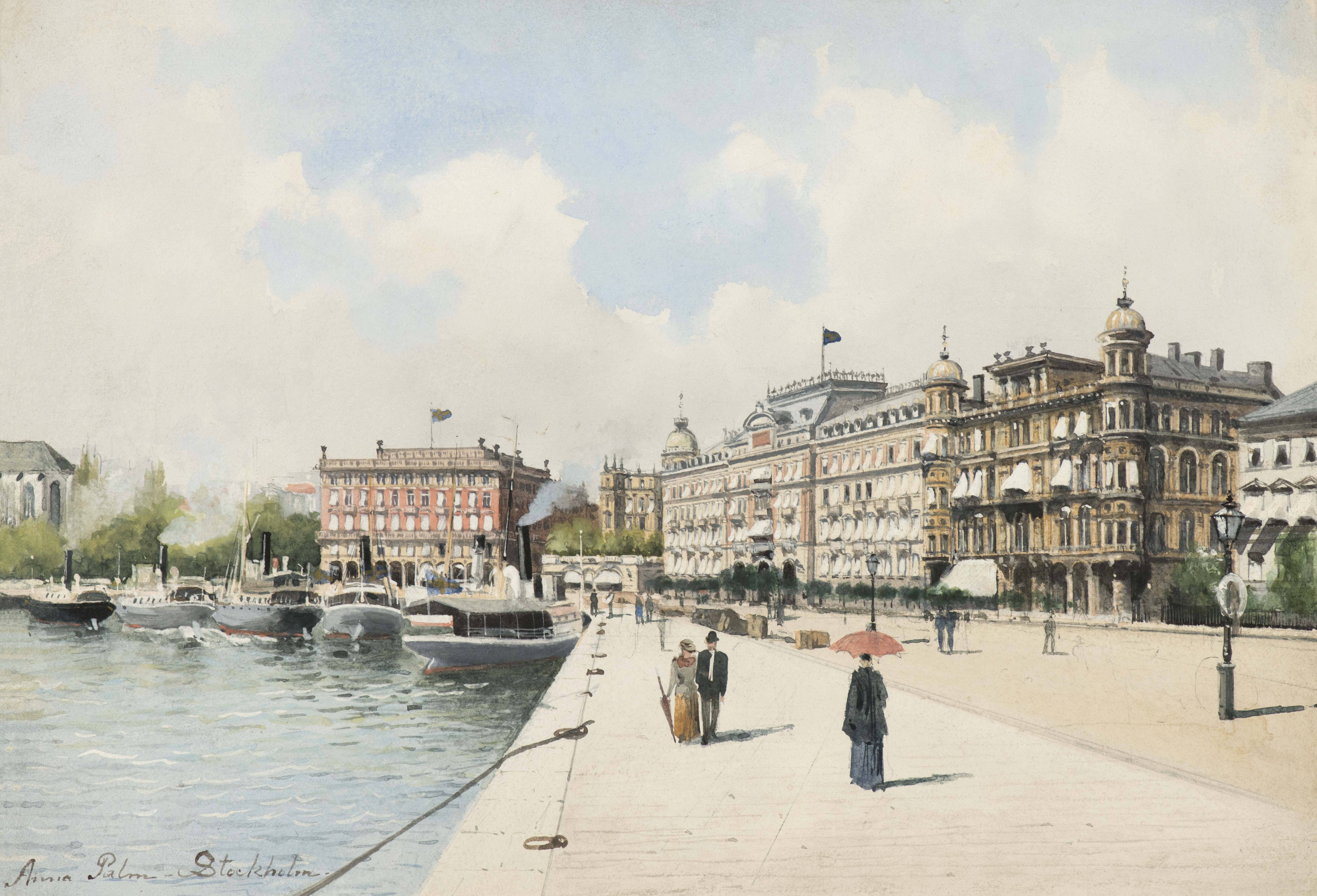 View of the Grand Hotel and the Bolinderska Palace, watercolour and Chinese white, 20.5 x 30.5 cm, executed in the 1890s.
