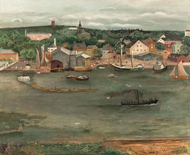Djurgården från Kastellholmen. Olja på träpannå, 45 x 55 cm, signerad Eric Hallström. Utförd 1923.